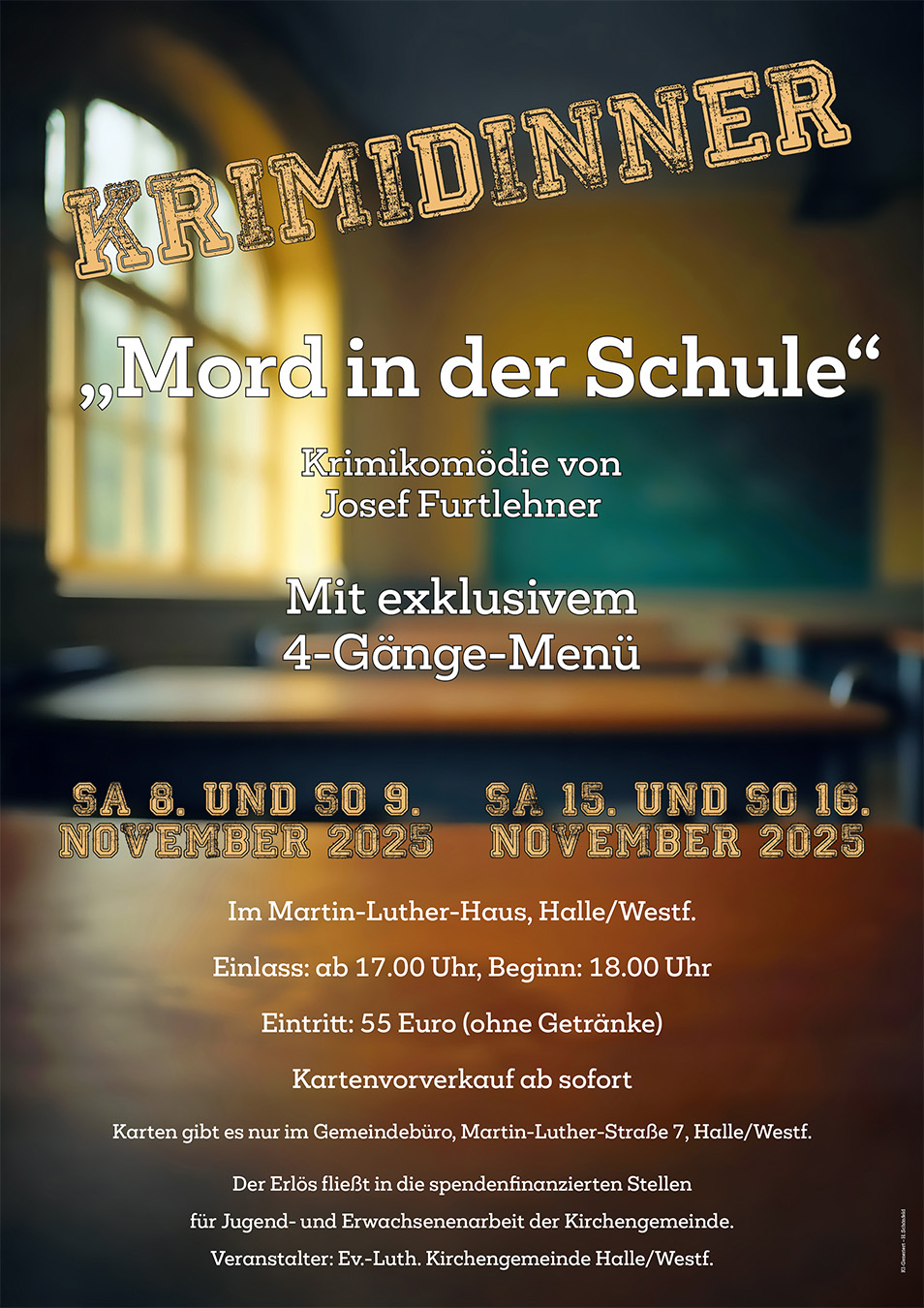 Die Haller Kirchengemeinde lädt nach dem Erfolg von 2019 wieder zu einem Krimidinner ins Martin-Luther-Haus ein.